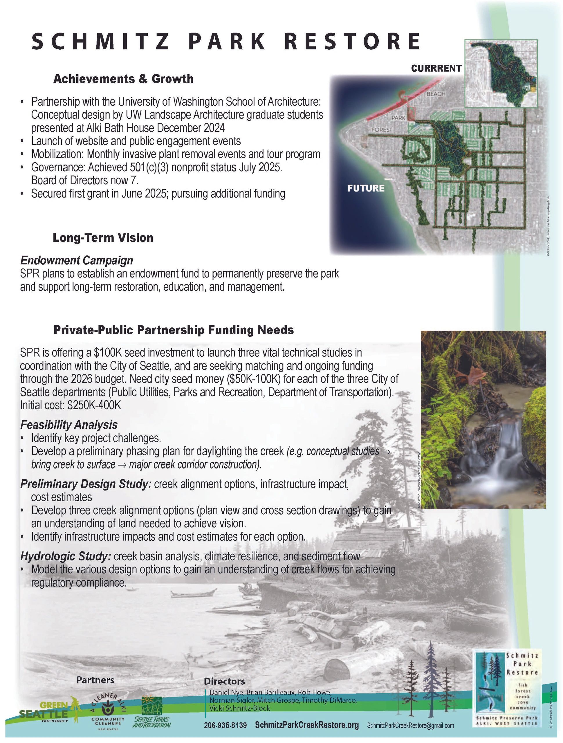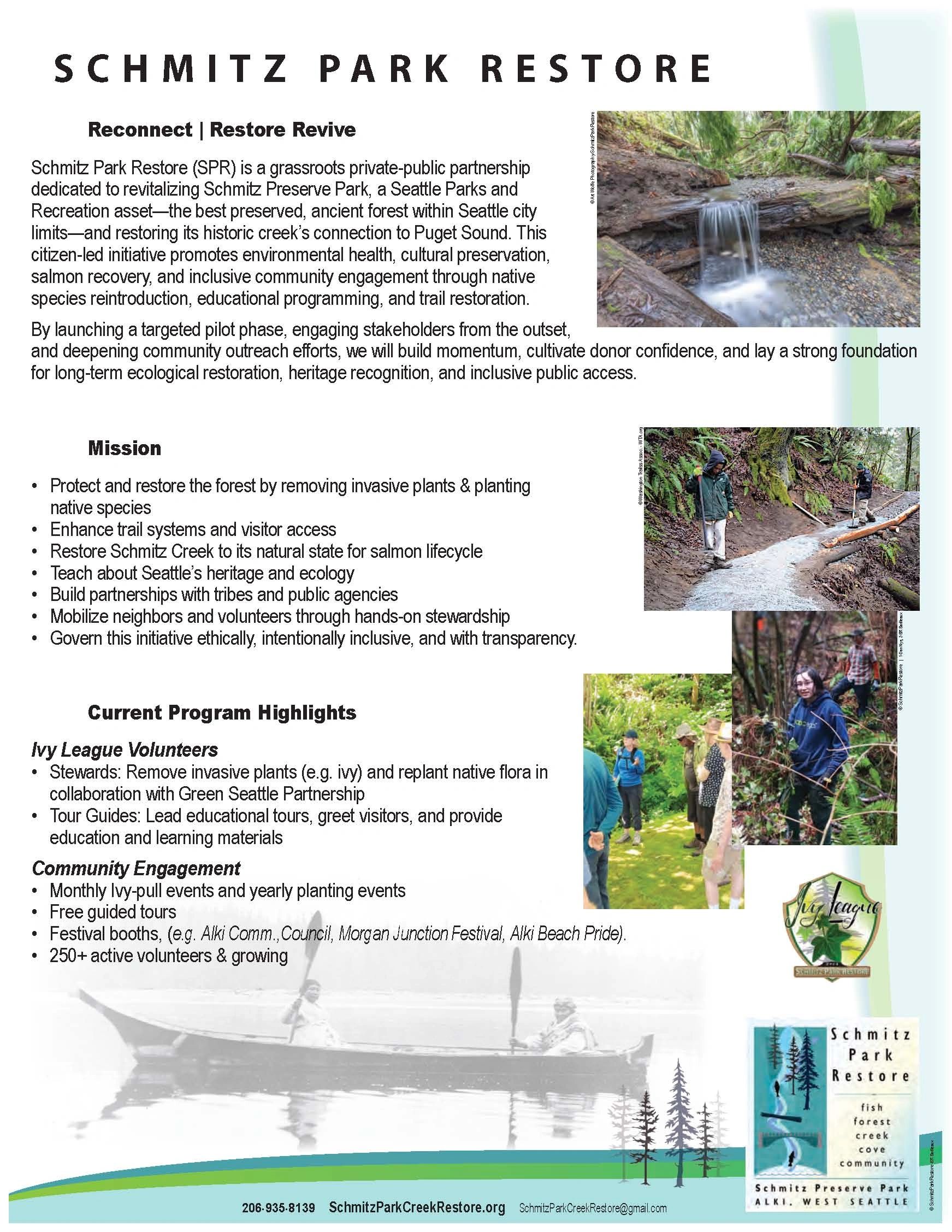 support Seattle Parks and Seattle Public Utilities in advancing restoration efforts. Additionally, a